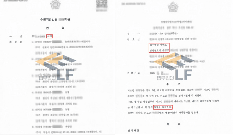 의뢰인은 징역 2년에 집행유예 3년을 선고받으며, 징역형을 피할 수 있었습니다.