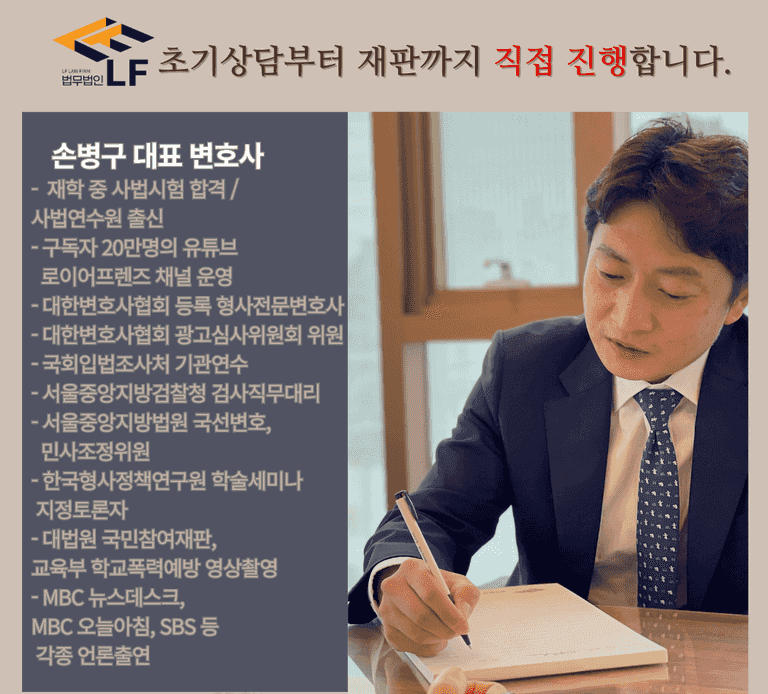 따라서 형사 사건과 관련돼 인생의 큰 위기에 봉착했을 때는, 믿을 수 있는, 다수의 성공사례를 통해 이미 검증된 형사전문변호사의 조력을 받는 것이 가장 최선의 선택이 될 수 있을 것입니다.