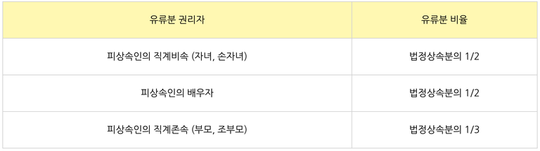 유류분을 받을 수 있는 권리자와 그 비율은 민법에 명시되어 있습니다.
