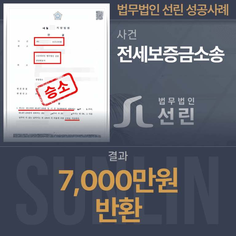 전세보증금반환소송 → 결과 : ‘7,000만원’ 반환 판결