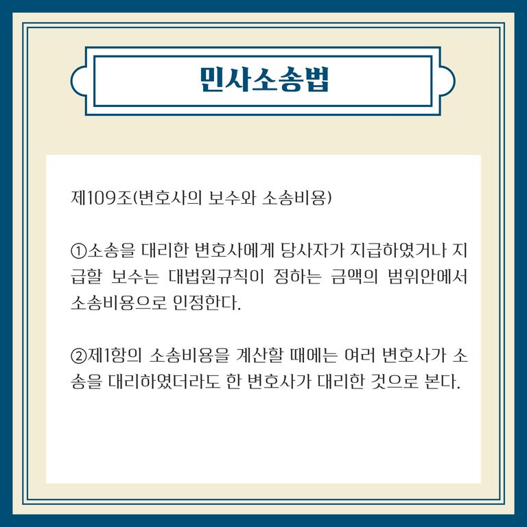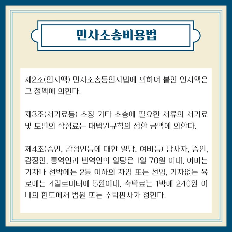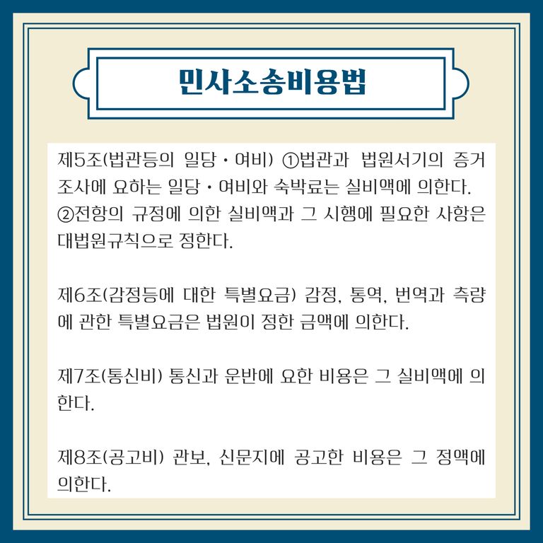 📍 패소자가 부담하는 소송비용은 민사소송비용법 및 민사소송법에서 정하고 있습니다.