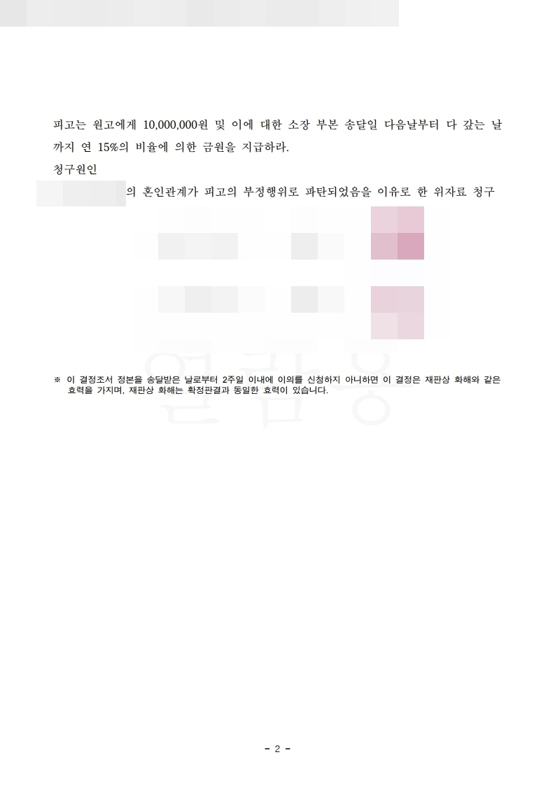 결정적인 증거는 없었지만, 여러가지 간접증거들이 많았기에 법원에 증거들을 제출하여 입증하기 위해 노력했고, 결국 법원에서 상간남에게 위자료 600만원을 지급하고 지연손해금까지 인정받는 판결을 받았습니다.
