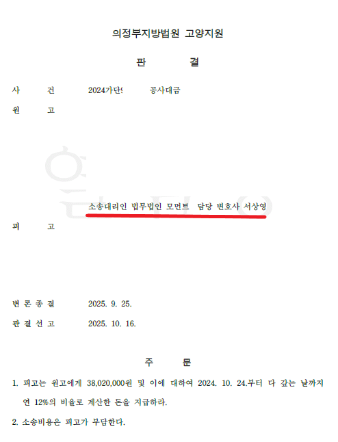 또한 공사 대금 청구권이 정당하다는 점을 법리적으로 강조하며, 재판부 설득에 집중했습니다.