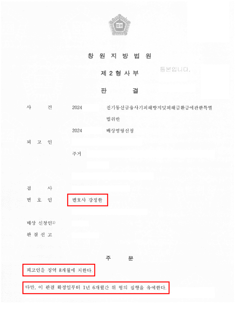 창원 보이스피싱 계좌공장 사건 집행유예 선고 사례