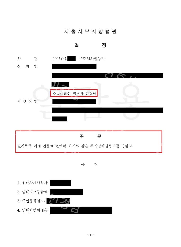 이번 결정을 통해 의뢰인은 등기부등본에 임차권이 기재됨으로써, 이사를 가시더라도 종전의 대항력과 우선변제권을 그대로 유지할 수 있게 되었습니다. 추후 임대인이 계속해서 보증금을 반환하지 않을 경우 진행될 강제집행이나 보증금 반환 청구 소송에서 의뢰인의 권리를 지키는 강력한 담보가 되었으며, 심리적 압박을 느낀 임대인으로부터 보증금을 조속히 회수할 수 있는 발판을 마련하였고 향후 보증금 반환 소송부터 강제집행까지 의뢰인을 위한 최선의 조력을 다할 계획입니다.