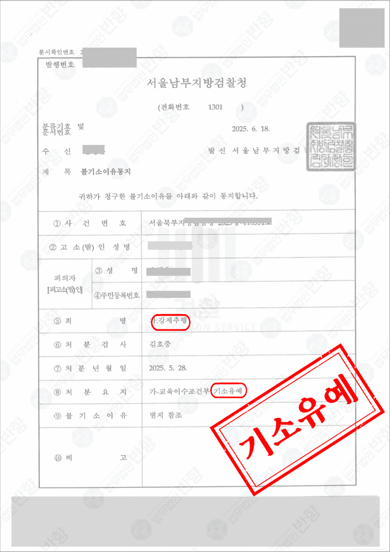 수사기관은 의뢰인의 반성 태도와 합의 내용, 재범 가능성이 낮다는 점 등을 종합적으로 고려해 강제추행 기소유예 처분을 결정했습니다. 의뢰인은 전과 없이 사건을 마무리할 수 있었습니다.