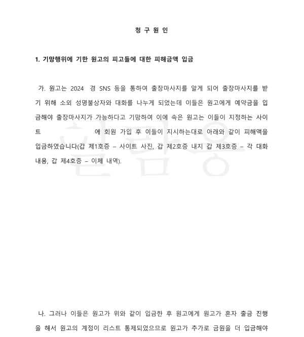 이 사건에서도 의뢰인은 출장마사지사기를 당하여 피고들에게 피해액을 입금하였고 이를 돌려받기 위해 저를 찾아오셨습니다.