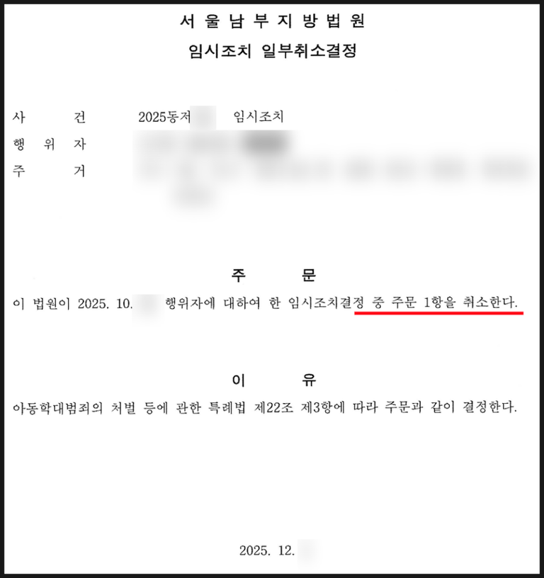 임시조치를 해제해 가정 붕괴를 막은 의미 있는 결과였습니다.