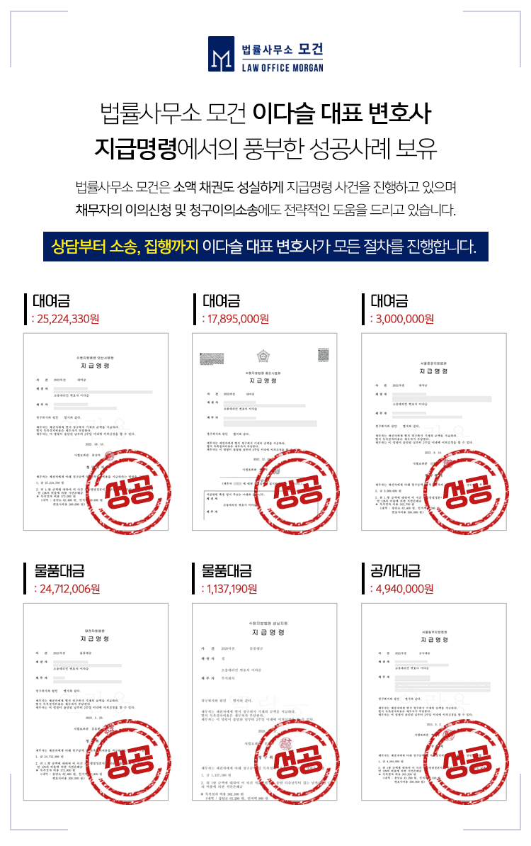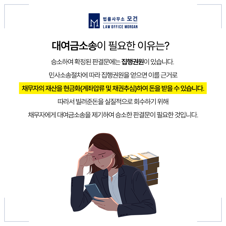 상황에 맞는 적절한 방법을 강구하여 추심까지 도와드리고 있으니, 도움이 필요하신 분들께서는 법률사무소 모건으로 문의하여 주시기 바랍니다.