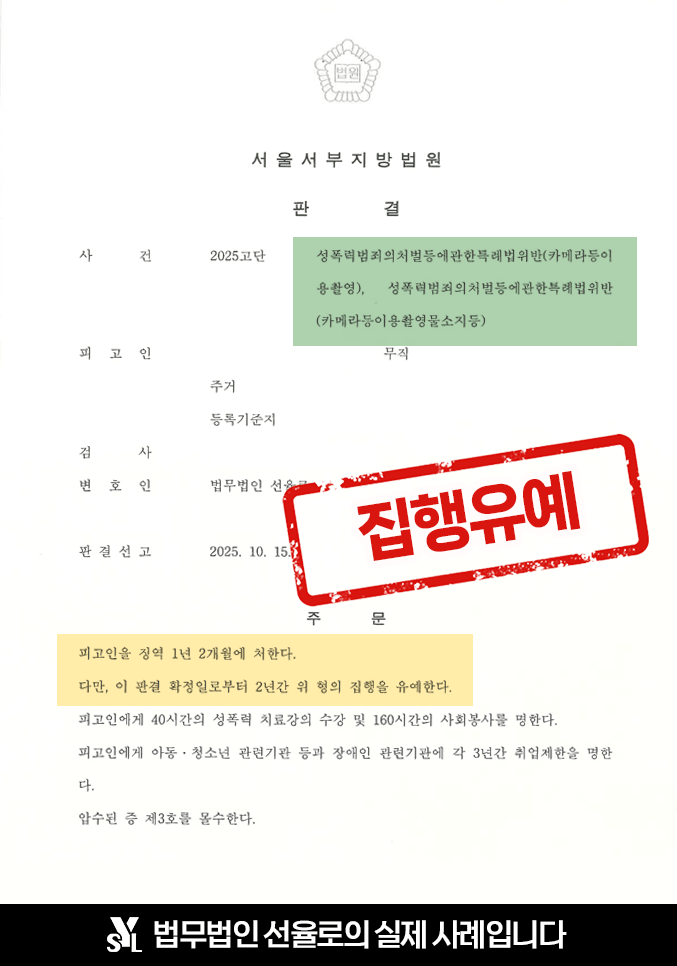 ![[카메라등이용촬영죄] 공공장소에서 불법촬영 143건 저지른 사례](/_next/image?url=https%3A%2F%2Fd2ai3ajp99ywjy.cloudfront.net%2Fuploads%2Ftitleimage%2Foriginal%2F5b1a13b0cd44dd0b0e2c1b7d-original.jpg&w=3840&q=75)