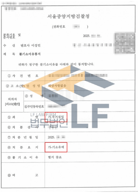 위와 같은 노력으로 의뢰인은 검찰로부터 기소유예 처분을 받을 수 있었습니다.