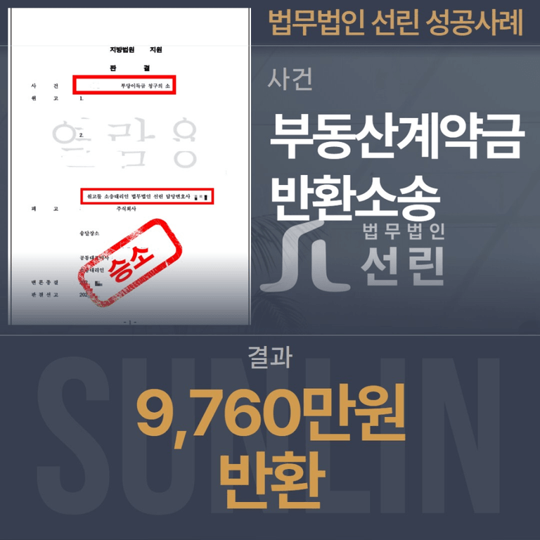 부동산계약금반환소송 → 결과 : ‘9,760만원’ 반환