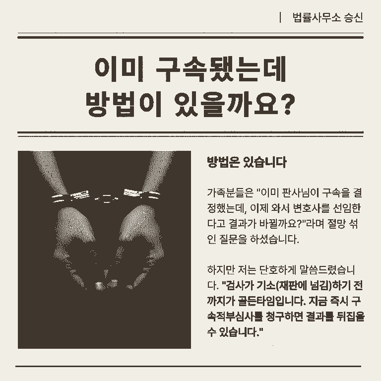 가족분들은 "이미 판사님이 구속을 결정했는데, 이제 와서 변호사를 선임한다고 결과가 바뀔까요?"라며 절망 섞인 질문을 하셨습니다.