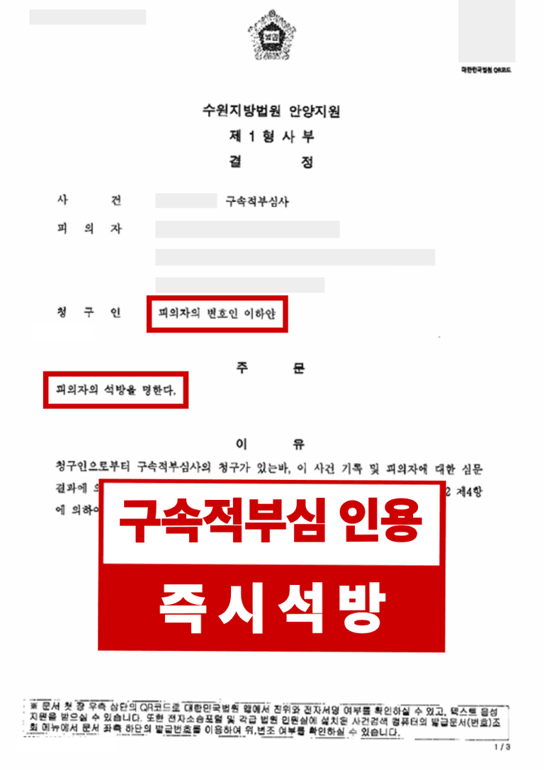 결과: 구속적부심 '인용' → 당일 즉시 석방