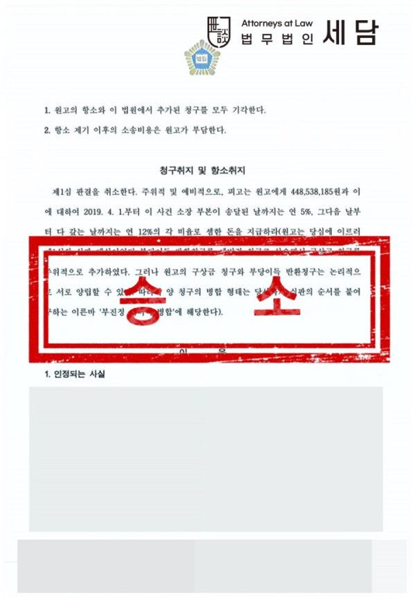 청구금액 전액에 대해 승소할 수 있었습니다.