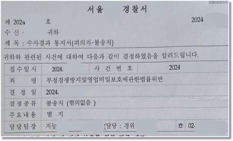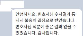 경찰서 지능팀에서 전문적으로 수사가 이루어졌음에도 불구하고, 저희가 경찰조사에 치밀하게 대응하고 변호인의견서를 제출하여 무혐의를 치열하게 다툰 결과, 결국 경찰단계에서 바로 불송치 결정(무혐의)이 나왔습니다!