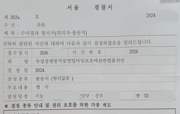 뿐만 아니라 이 사건이 부정경쟁방지법 위반으로 처벌되는 경우 일어나게 될 사회적 혼란을 함께 제시하면서, 수사관이 불송치 결정이 아닌 다른 판단을 내리기 어렵도록 압박하였습니다.