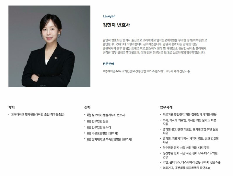 뉴로이어 법률사무소 의료 전문 변호사 한의사 출신 김민지 변호사님