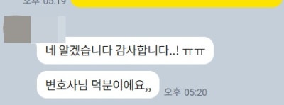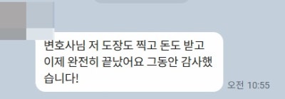 의뢰인께서 보내주신 감사 인사입니다.