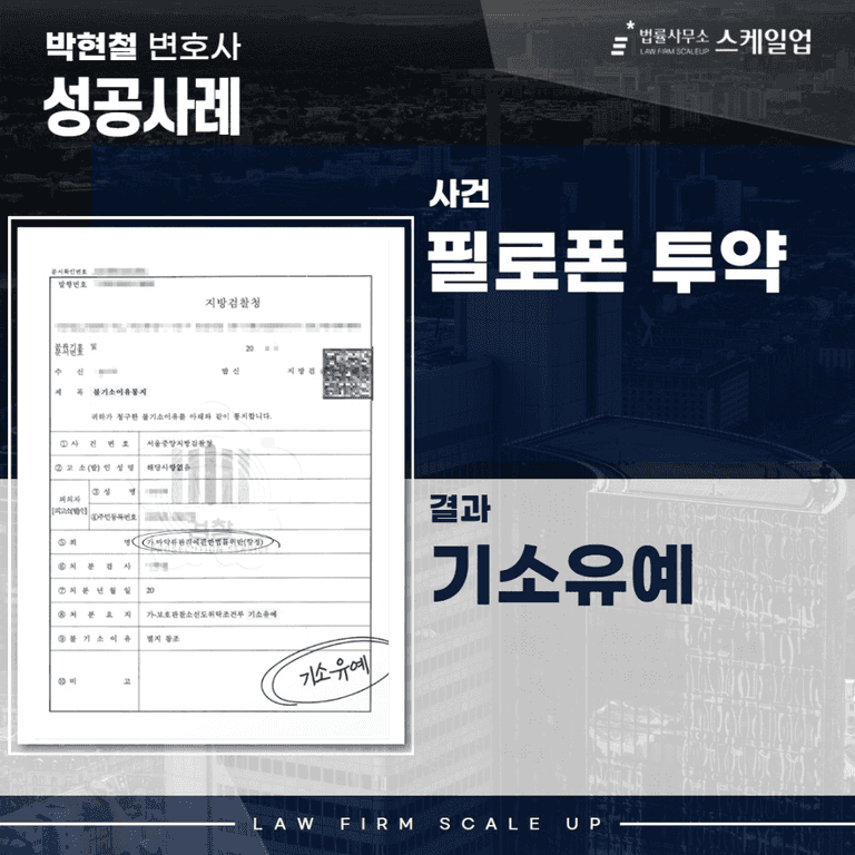 필로폰 투약 혐의에 대해 ‘기소유예’ 처분을 내렸으며, 좋은 결과를 얻을 수 있었습니다.
