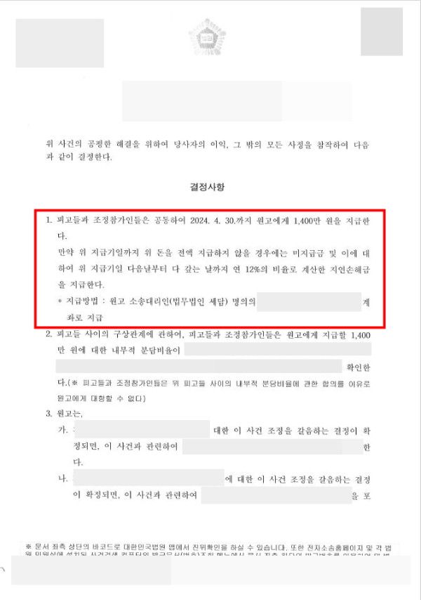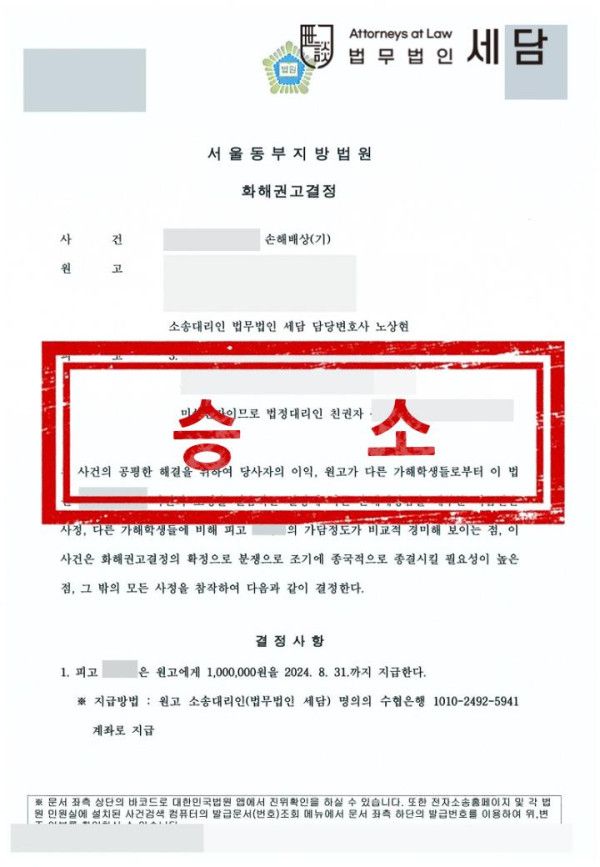 이후 판결에 따른 손해배상액을 강제집행 절차를 통해 회수하였습니다.