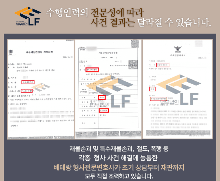 의뢰인이 재물손괴 혐의를 논리적으로 부정하지 못했다면 더욱더 가중한 처분을 받을 수 있던 상황처럼 말입니다.