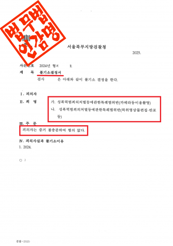 서울북부지방검찰청은 이 사건에 대해 다음과 같은 사유로 불기소 결정을 하였습니다.