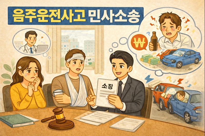 음주사고의 민사소송에서는 향후치료비, 소득 손실, 위자료까지 포함하면 수천만 원~ 1억 원 이상 배상 판결도 가능합니다.