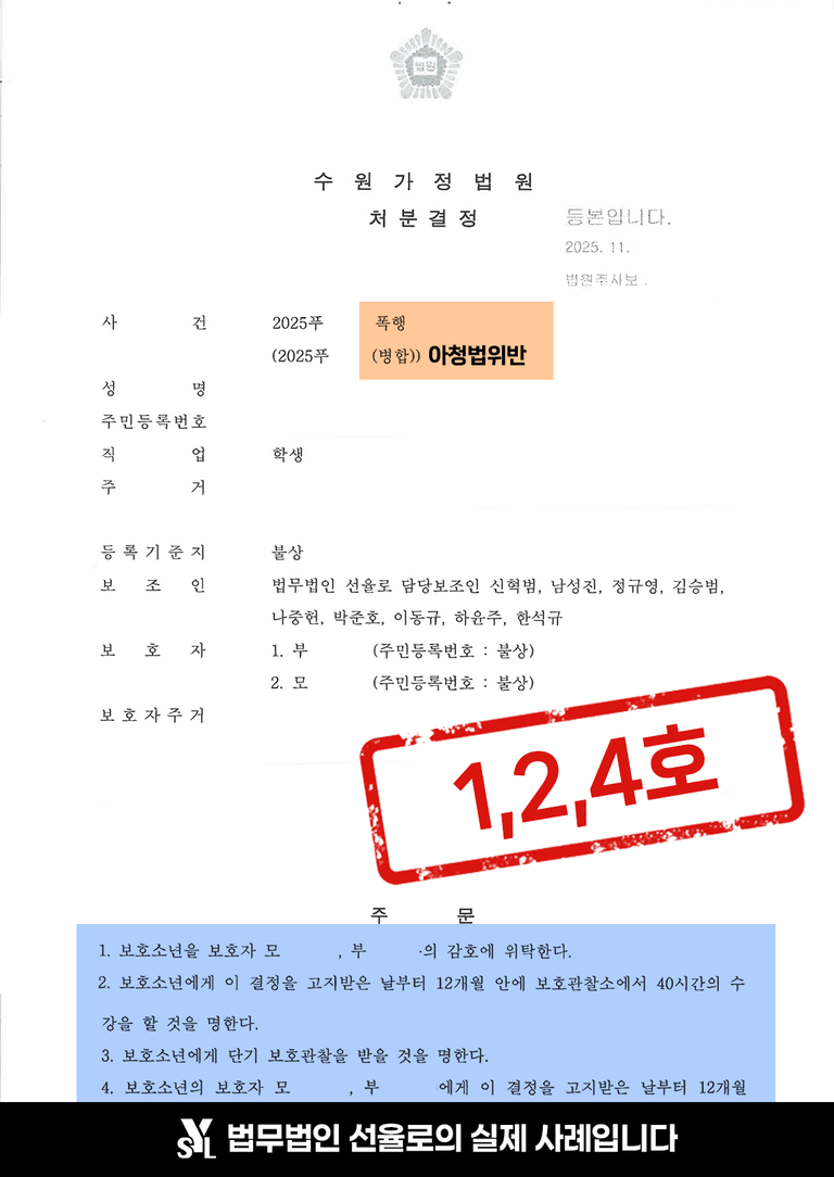 그 결과 보호소년은 1호·2호·4호 보호처분을 받으며