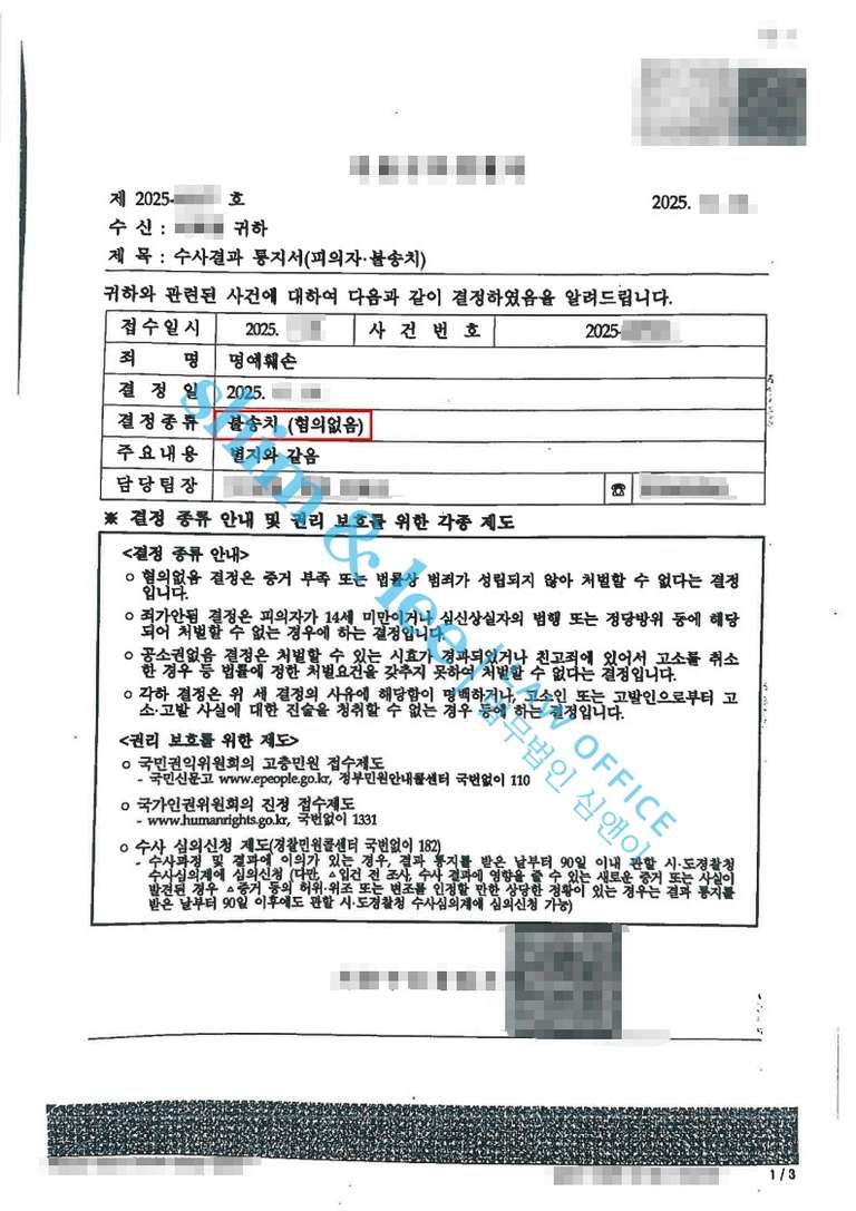 심앤이는 정보공개청구를 통해 접수된 고소장을 확보한 뒤, 꼼꼼하게 내용을 검토하여 고소인의 주장에 대해 논리적으로 반박하는 의견서를 제출했습니다.