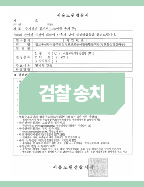 고소대리 의견서를 통해 정보통신망법 위반 및 비밀침해죄의 요건을 낱낱이 소명한 결과, 경찰은 사안의 심각성을 인지하고 이 사건을 검찰에 기소 의견으로 송치하였습니다.
