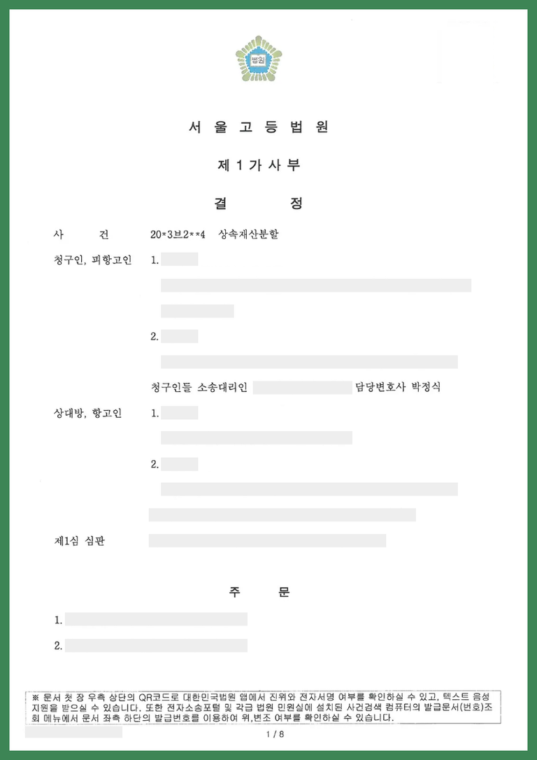 피상속인이 사망한 후 피상속인의 한 자녀가 상속 관련 업무를 독단적으로 처리하면서 청구인들에게 상속재산 내역을 제대로 알려주지 않았습니다. 청구인들이 상속재산분할심판청구를 하자 아들인 상대방은 이미 상속인들 사이에 상속재산분할협의서가 작성되었다고 주장하였습니다.