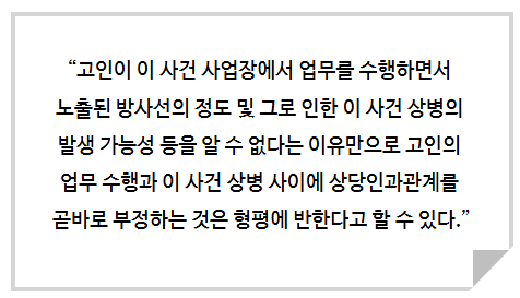위와 같이 판결하고 방사선 노출에 대하여도 조사할 수 있었음에도 그러지 않았던 재해조사 과정의 문제를 지적했습니다.