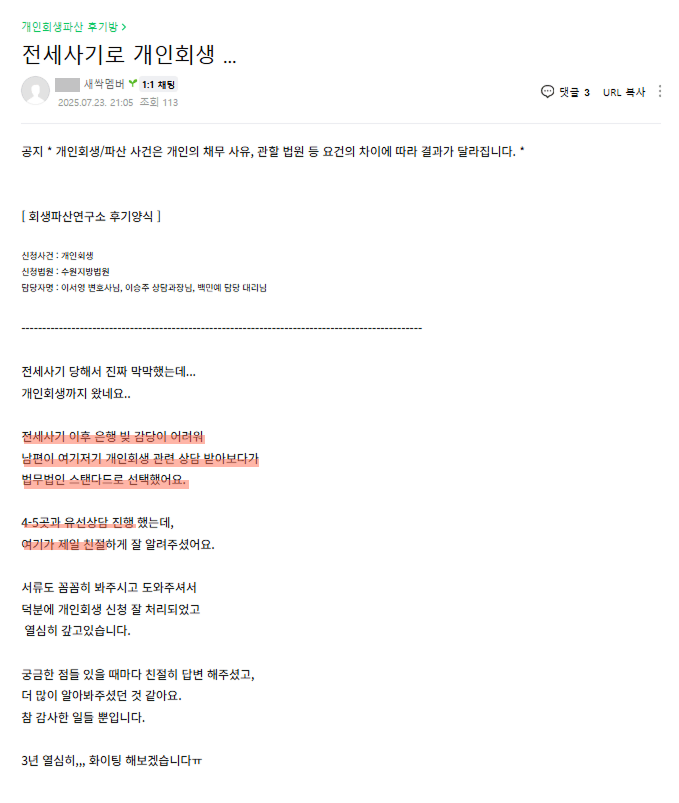 법률사무소 우인 개인회생 후기