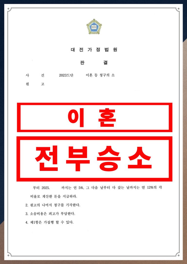 이 사건은 단순한 이혼 승소를 넘어 배우자가 외도를 끝까지 부인했음에도 명확한 증거로 부정행위를 입증했다는 점, 기존 양육자가 상대방이었음에도 양육권이 비양육자였던 의뢰인에게 변경되었다는 점, 단독 친권·단독 양육권 + 위자료 + 소송비용까지 모든 쟁점에서 원고가 승소했다는 점에서 의미가 큽니다.