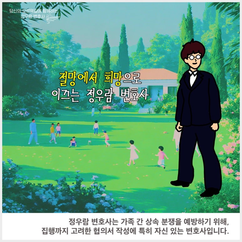 정우람 변호사는 상속재산분할협의서를 작성할 때 다음 원칙을 기준으로 합니다.