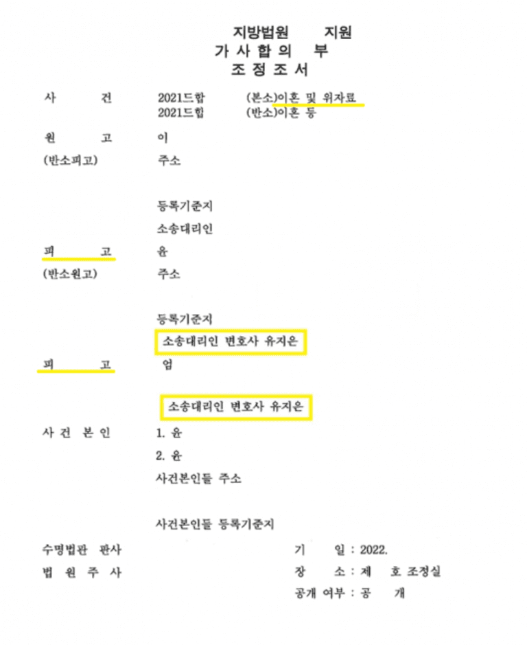 그 결과 상대방은 위자료를 청구하지 않는 대신, 재산분할에서 합의를 선택했고, 사건은 조정으로 종결됐습니다.