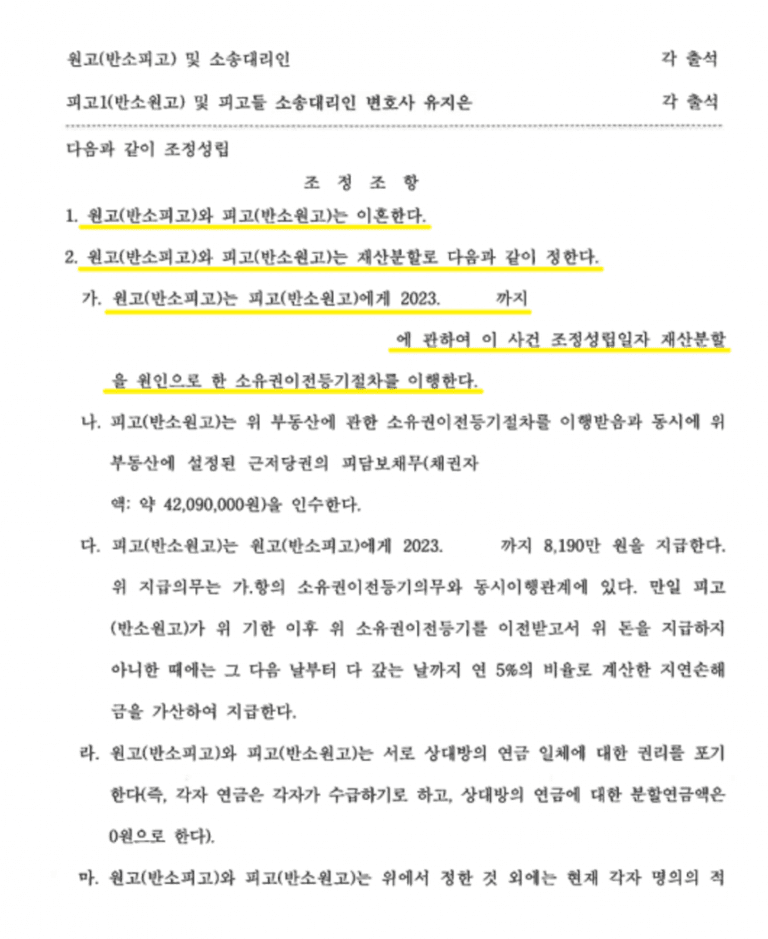 결국 판결에서는 불가능했던 방식이 조정에서는 합의로 성립됐고, 유책배우자임에도 아내 명의 부동산을 취득하는 결과로 이어졌습니다.