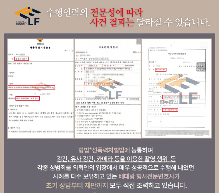 성적 행위에 대한 피해자의 거부 의사가 명확했던 점, 카메라 등을 이용한 촬영 행위가 여러 차례 이뤄진 점을 확인했습니다. 이와 같이 양형에 불리한 부분을 온전히 인정하면서도. 카메라 등을 이용한 촬영 행위에 따른 범죄물을 다른 타인에 유포를 한 정황이 없다는 것 등을 강조했습니다.