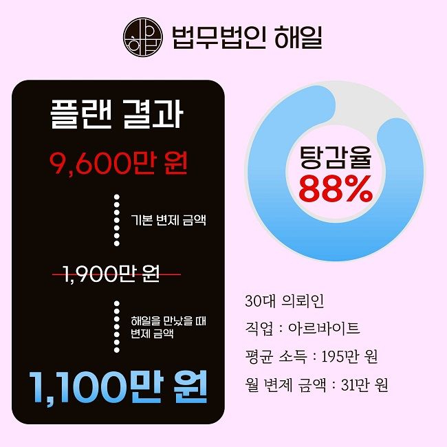 추가생계비 20만 원 확보 : 총 88% 탕감
