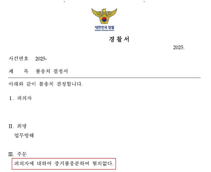 최근 경찰은 의뢰인에게 불송치(혐의없음) 결정을 하였습니다.
