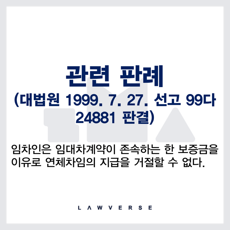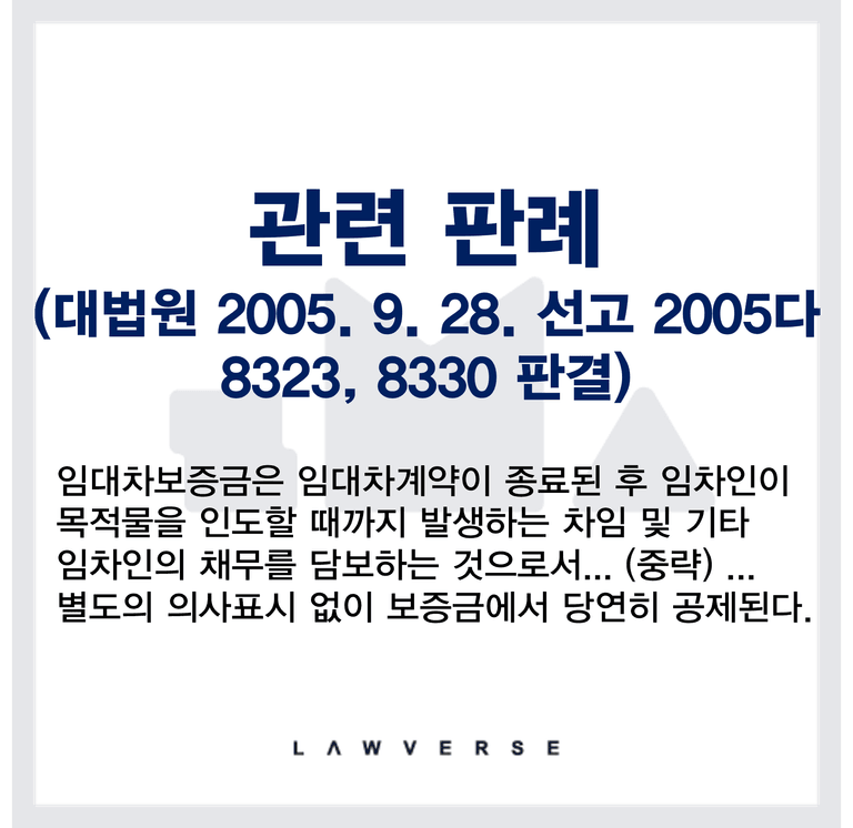 즉, 임대차 계약 해지나 종료 시 연체 월세가 있다면 이는 보증금 반환 대상에서 제외되는 것이 원칙입니다.