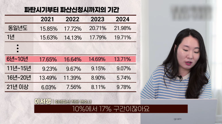 통계를 분석하며 가장 안타까웠던 부분은 바로 '신청 시기'입니다. 경제적 파탄이 온 시점부터 실제로 회생이나 파산을 신청하기 까지 무려 20년 넘게 걸린 분들이 전체의 10%나 된다는 사실이에요.