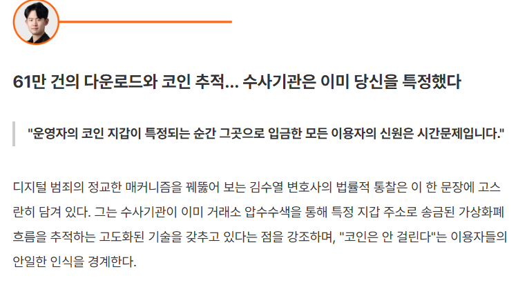 거래소 압수수색을 통해 특정 지갑 주소로 송금된 코인 흐름을 추적하는 기술을 갖추고 있습니다.