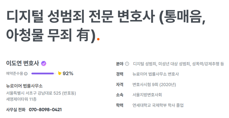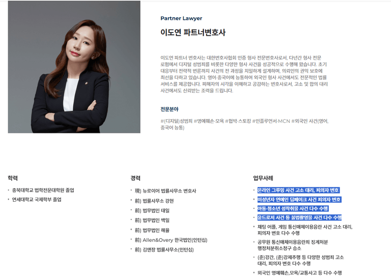 뉴로이어 법률사무소 디지털 성범죄팀 이도연 변호사입니다.