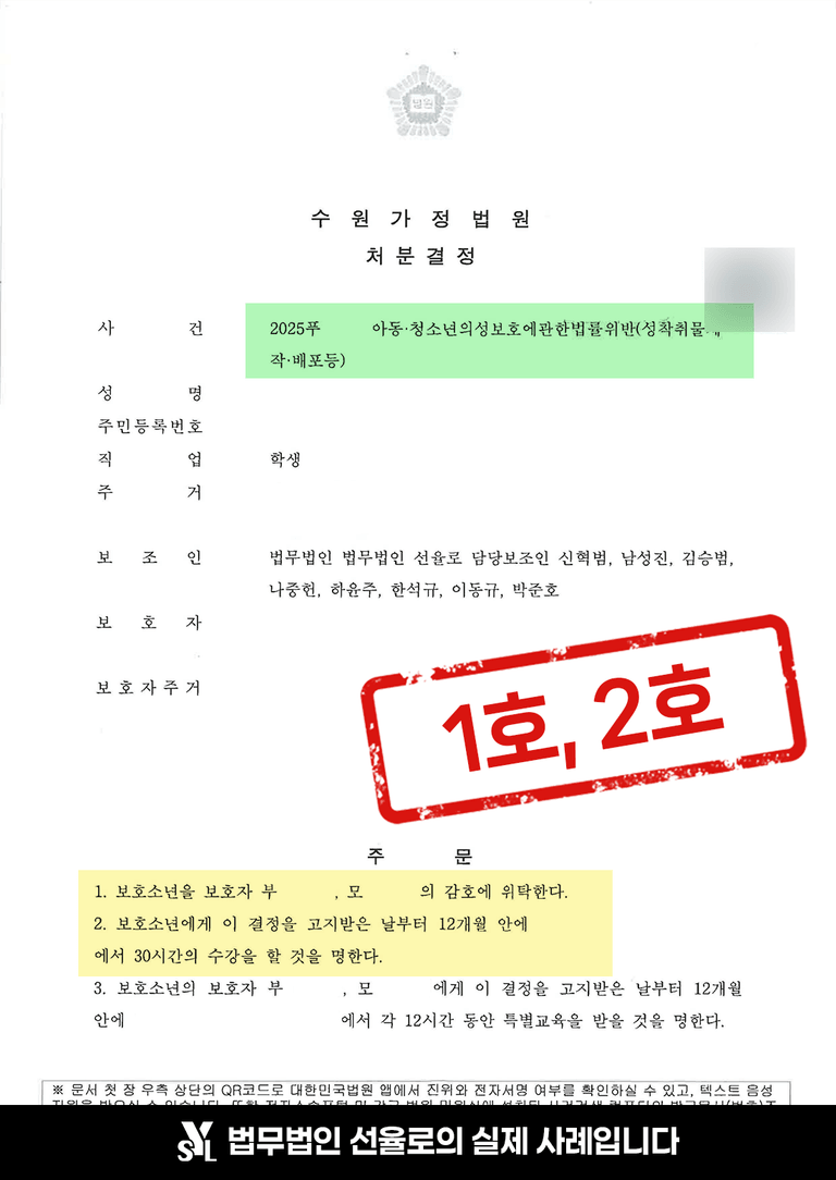 그 결과 보호소년은 1호·2호 보호처분을 받으며