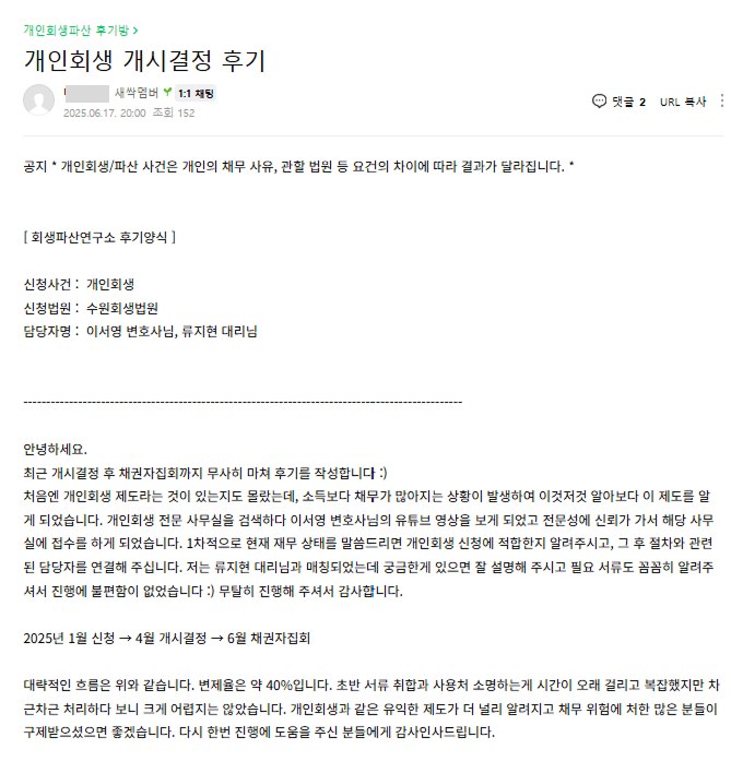 개인회생 후기