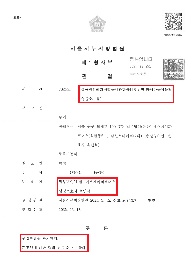 이러한 저의 조력을 바탕으로 A씨는 원심판결이 파기되고 2년이 지나면 면소 간주되는 선고유예를 받음으로써 전과기록을 남기지 않게 될 수 있었습니다.
