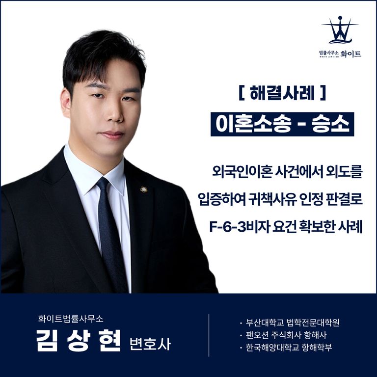 결과적으로 외국인이혼 소송에서 승소 판결문을 근거로 F-6-3 비자를 신청할 수 있게 되었습니다.