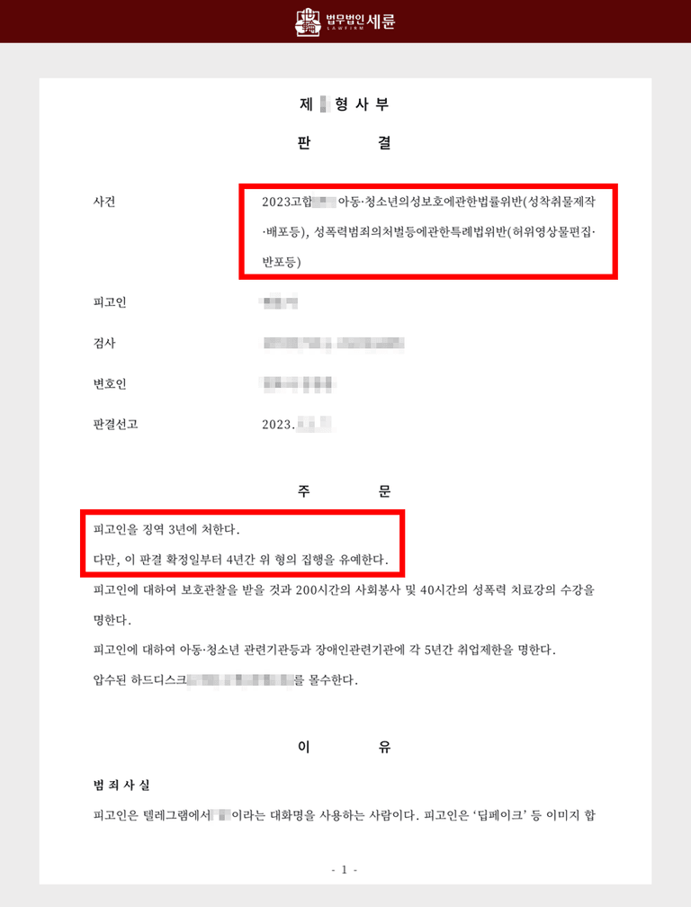 ![[피의자 대리] 딥페이크 동영상 합성한 성범죄 가해자 집행유예](/_next/image?url=https%3A%2F%2Fd2ai3ajp99ywjy.cloudfront.net%2Fuploads%2Ftitleimage%2Foriginal%2F5b19eb2bcd44dd0b0e2c15bb-original.jpg&w=3840&q=75)